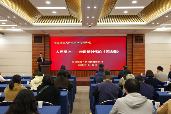 ????????根據水利部關于學習宣傳民法典相關文件精神,11月16日下午瑞迪科技集團邀請了江蘇鏡見興律師事務所袁勝寒主任一行,舉辦了瑞迪融創大講堂系列管理講座——“人民至上——走進新時代的《民法典》”主題宣講學習會。